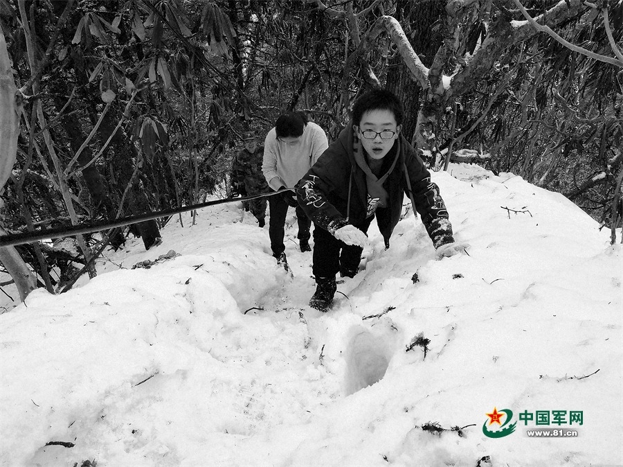 周忠燕和胡博文探访哨所,与官兵一起攀登雪山。