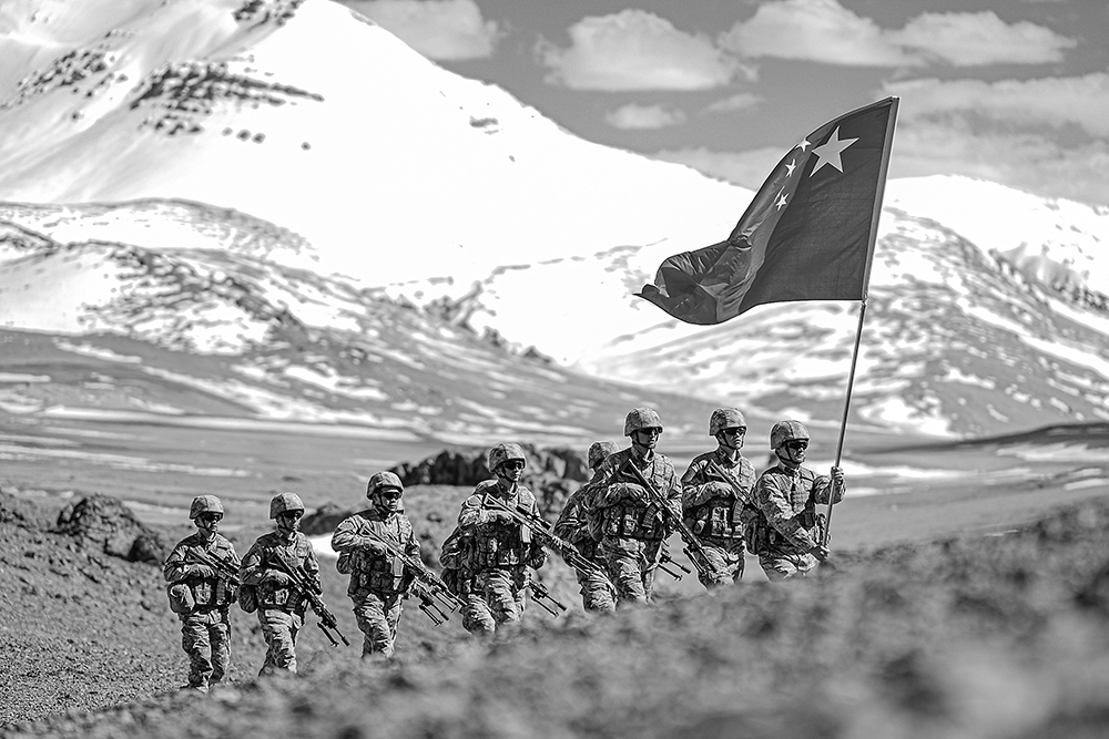 下士席云海只觉得肺像要炸开,但脚步不敢慢下,他紧跟着前面的战友,冲向那片巨大的岩石区。刚刚完成隐蔽,浓云吞噬了头顶的蓝天,山风变得又急又冷,带着刺骨的寒意。紧接着,冰雹砸在岩石和头盔上,发出“噼噼啪啪”的声响。一块冰粒子顺着席云海的脖颈滑落,他不禁打了个寒战。“真是提神醒脑。”他向一旁的战友顽皮地说道。