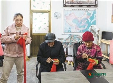 “年纪大啦,眼睛越来越花。虽然现在一周织不了几条,但俺们想着边疆很冷,能多织一条是一条,让守边的官兵戴上暖暖和和的。”赵中福说。