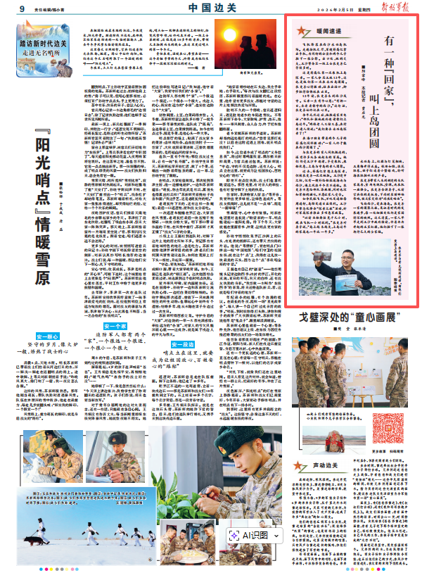 今年元旦过后,他拨通家里电话:“部队和驻地政府邀请你们上岛过年。”两位老人又惊又喜,在村里逢人便说:“我们要去永兴岛探亲了!”
