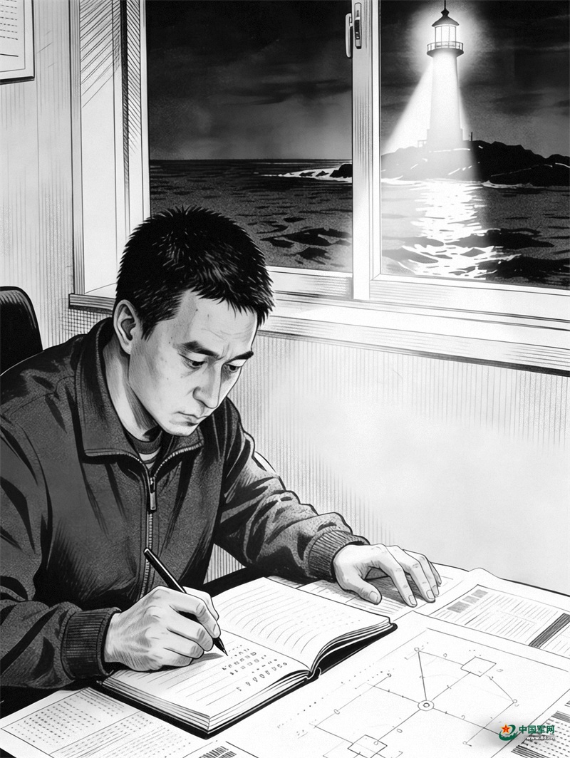 那些年,他跟着师傅学原理,白天别人休息时,他在机房模拟目标轨迹;夜里熄灯后,他独自打着手电记故障代码、画光路图。每次任务结束,他都认真总结故障现象和排除方法,并配上手绘图解。遇到难题,他就坐在场坪上,看远处灯塔的光柱扫过海面,给自己鼓劲:“灯光能给船指方向,我也能给自己找法子。”