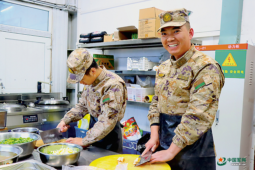 炊事班战友正在准备餐食。吴政波摄