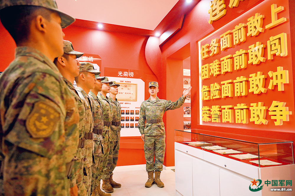 在该旅某连荣誉室,官兵接受红色教育。张举豪摄