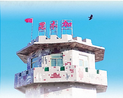 昆木加哨所新哨楼楼顶上,五星红旗迎风飘扬。李 鹏摄