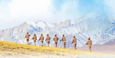 昆木加哨所官兵前往一线点位执行巡逻任务。陈 超摄