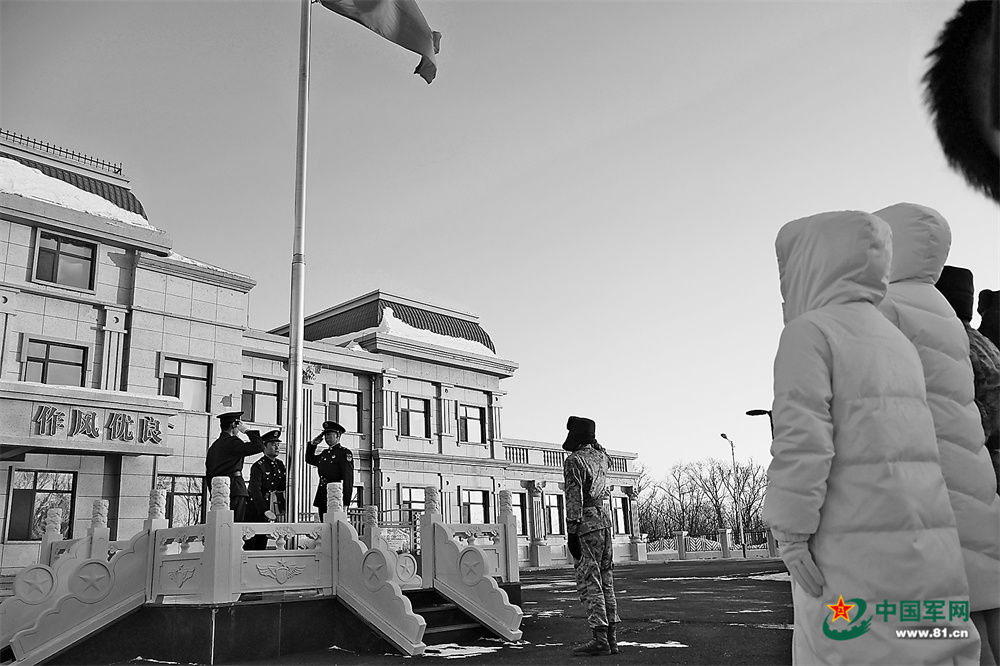 探亲军嫂参加祖国东极升旗仪式。