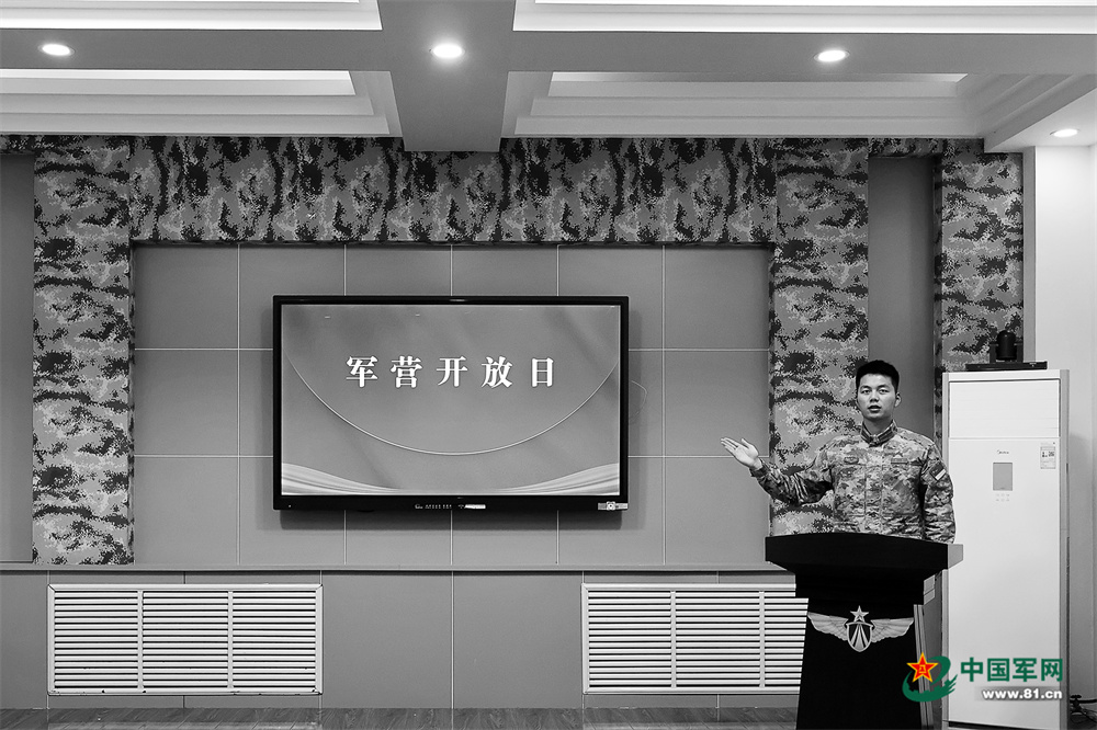 军营开放日,一名排长介绍部队情况。