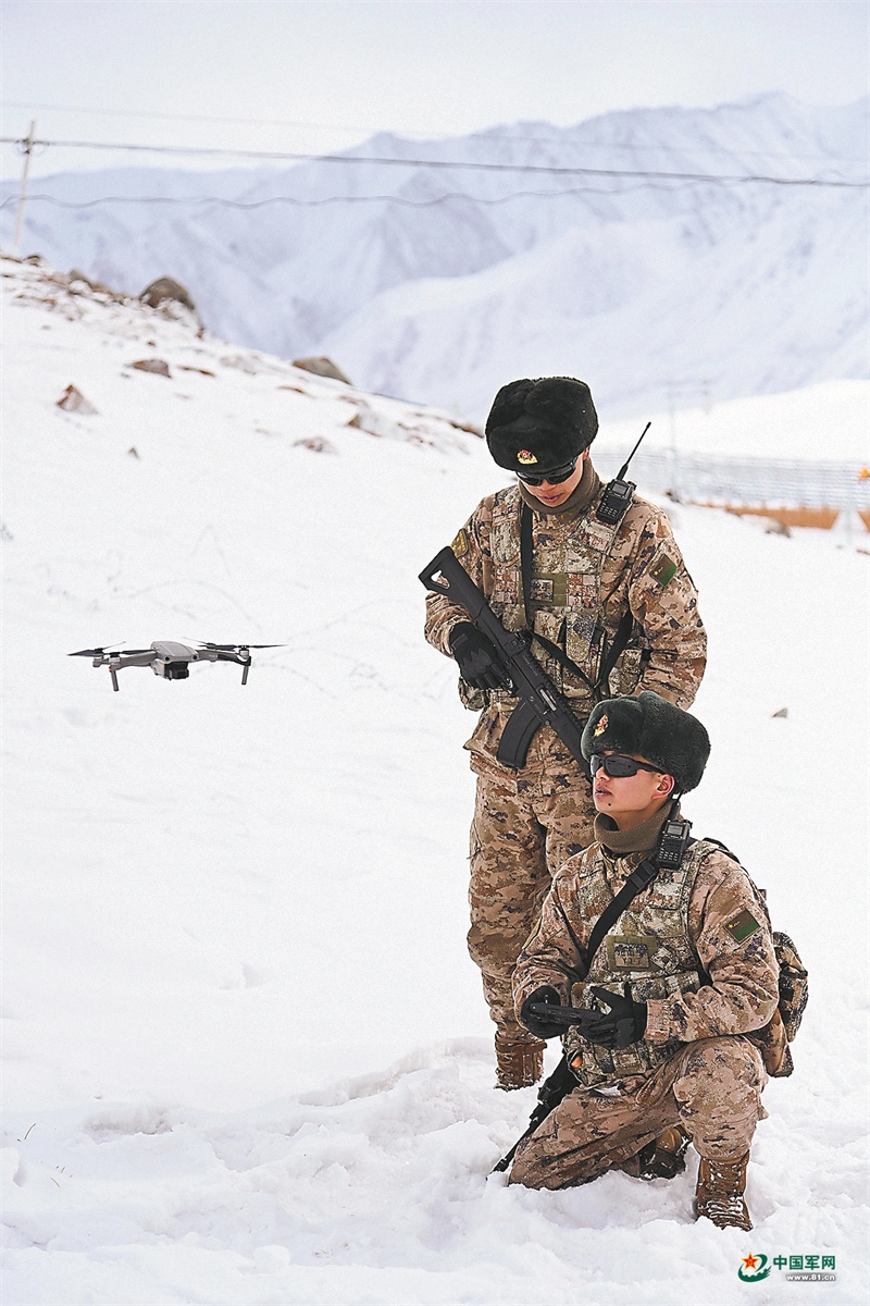 一级上士、无人机操作手张枞踩着齐膝深的积雪,找到一块平整的大石头,随即熟练操控无人机升空,察看周边山沟情况。冰天雪地里,记者没过一会儿就感到双脚麻木,张枞的眼睫毛很快结了一层薄冰。看着无人机实时回传的画面,他感慨地说:“虽然巡逻条件艰苦,但与前辈们相比,现在已经好多了。就拿巡逻路来说,最早一批连队前辈只能靠双脚一步一步走;后来几代戍边人,是骑在牦牛背上‘颠’过来的;如今,我们不仅坐上巡逻车巡逻,还用上了先进的执勤手段,实现一‘屏’尽览边情。”