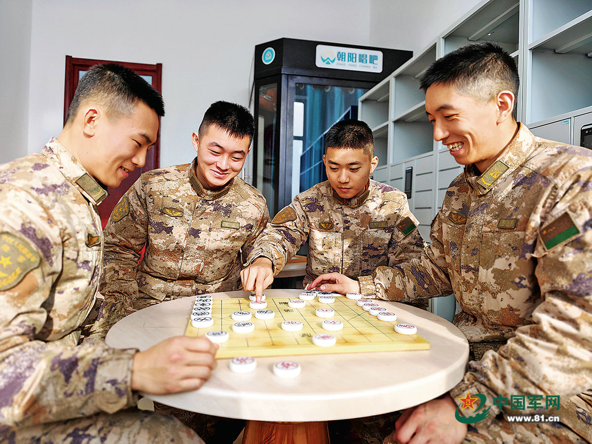 战士们业余时间下棋。王冠铭、黄泓源摄