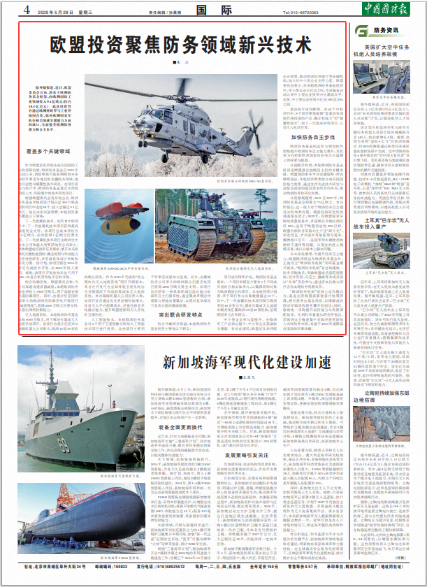 人工智能技术。本轮欧洲防务基金对4个用于卫星图像分析的人工智能技术项目进行投资。这些项目主要用于军事活动感知与监视。此外,由挪威防务公司牵头的欧洲联合扫雷系统项目获得2850万欧元资金支持。该项目旨在研发一种具备环境自适应能力的海军自主扫雷系统,通过集成多模态传感器与智能决策算法,实现对复杂海况下各类水雷的精准探测。