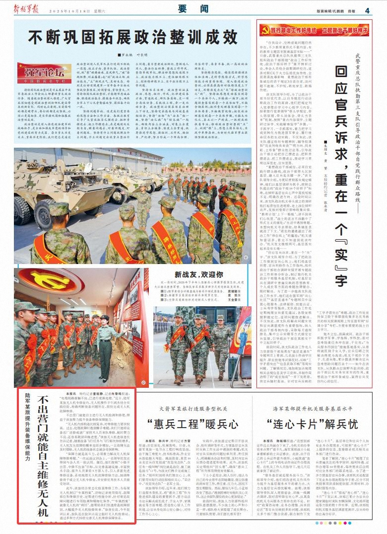 不出营门就能自主进行无人机检测和修理,得益于该旅聚力提升装备维修保障能力。