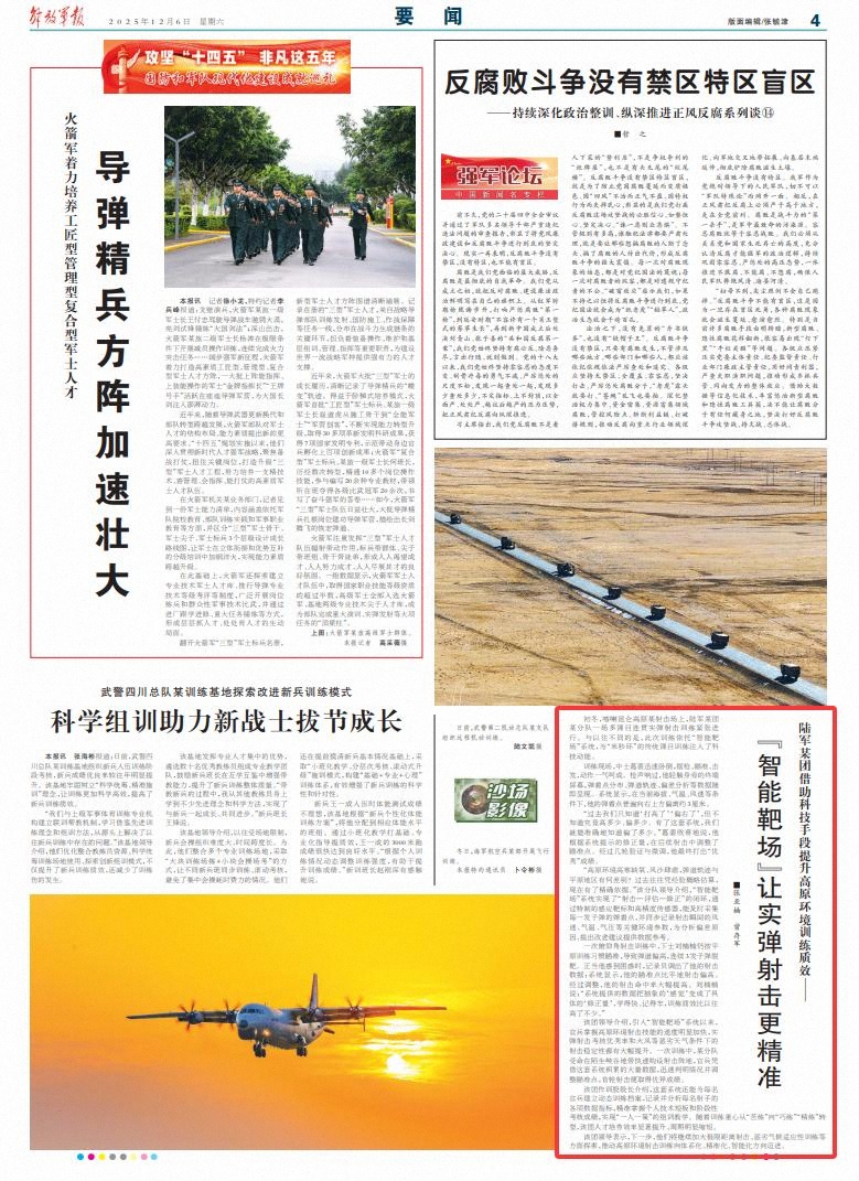 “高原环境高寒缺氧、风沙肆虐,弹道轨迹与平原地区有何差别?过去往往凭经验概略估算,现在有了精确依据。”该分队领导介绍,“智能靶场”系统实现了“射击—评估—修正”的闭环,通过特制的感应靶标和高精度传感器,能及时采集每一发子弹的弹着点,并同步记录射击瞬间的风速、气温、气压等关键环境参数,为分析偏差原因、提出改进建议提供数据参考。