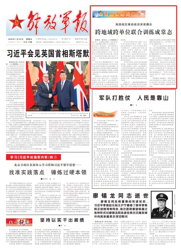 昔日军兵种的各自“独奏”,如今汇成气势恢宏的练兵“交响”。在该战区统筹指挥下,各军兵种部队贯彻“仗要联合打、兵要体系练”原则,战训需求一体研究、训练内容一体筹划、评估标准一体衡量、练兵任务一体落实。此外,该战区紧盯体系作战能力短板弱项,建立训练问题清单、整改清单、责任清单,扎实推动练兵质效持续提升。