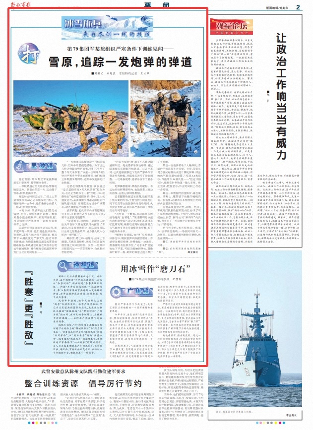 纵观冬训场,“打”的实质是在极端自然环境下对战斗力的“强制性验收”与“压力性生成”。它要求我们学会从“适应寒冷”转向“利用寒冷”,从“战胜冰雪”转向“借势冰雪”;既要锤炼“寒区生存”的过硬本领,更要锻造严寒条件下“一击制胜”的锋刀利刃。当人员与装备都能在严冬的洗礼下,离实战近些、再近些,官兵就会底气十足:在任何一个冷酷的冬日,都能打赢下一场战争。