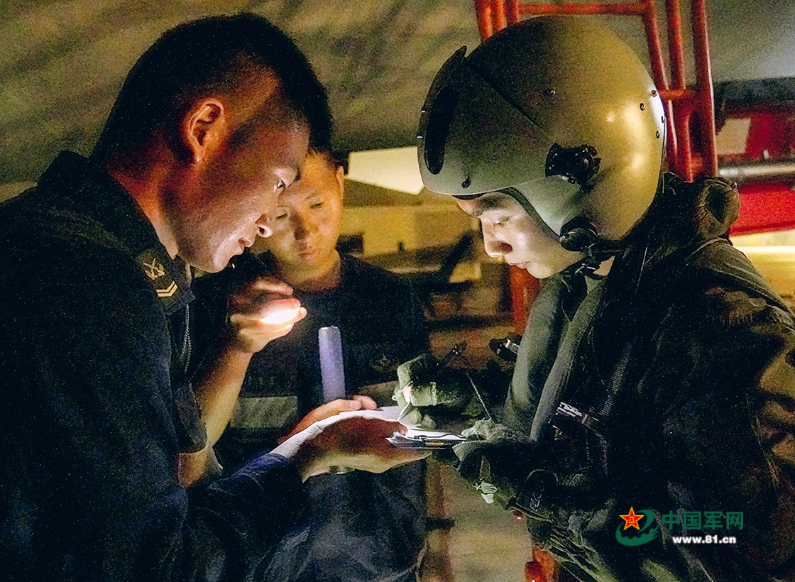 云雾散尽,天气状况转好。机务官兵在机场耐心等待,天边星光闪耀,轰鸣声由远及近,战机按时返航。