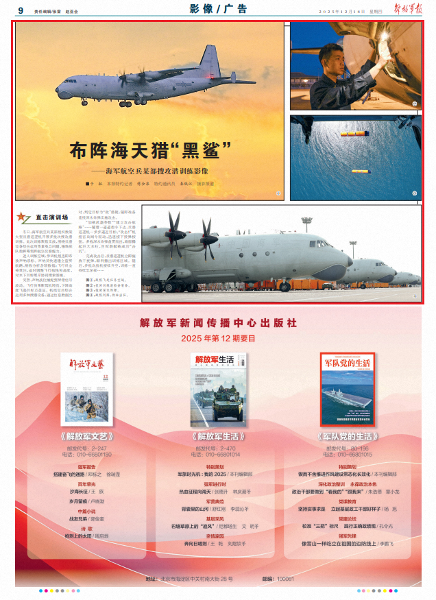 冬日,海军航空兵某部组织数架大型反潜巡逻机开展多批次搜攻潜训练。此次训练聚焦实战,围绕反潜设备综合运用等重难点问题,锤炼部队指挥筹划和航空反潜能力。