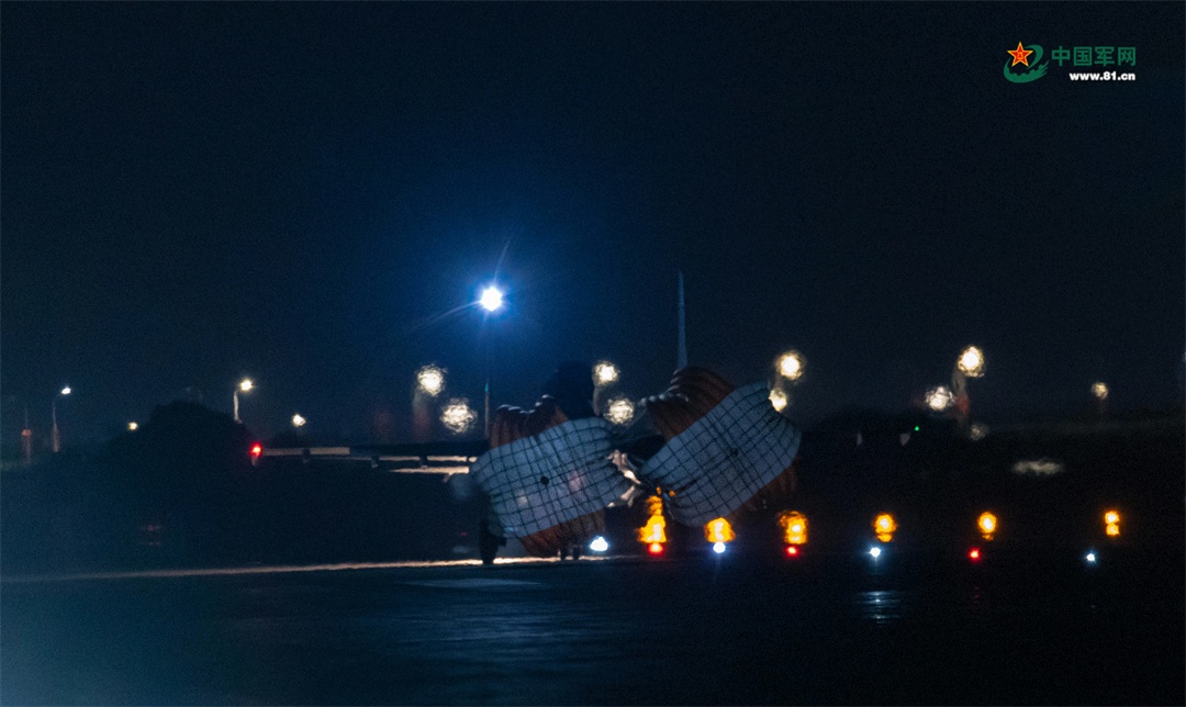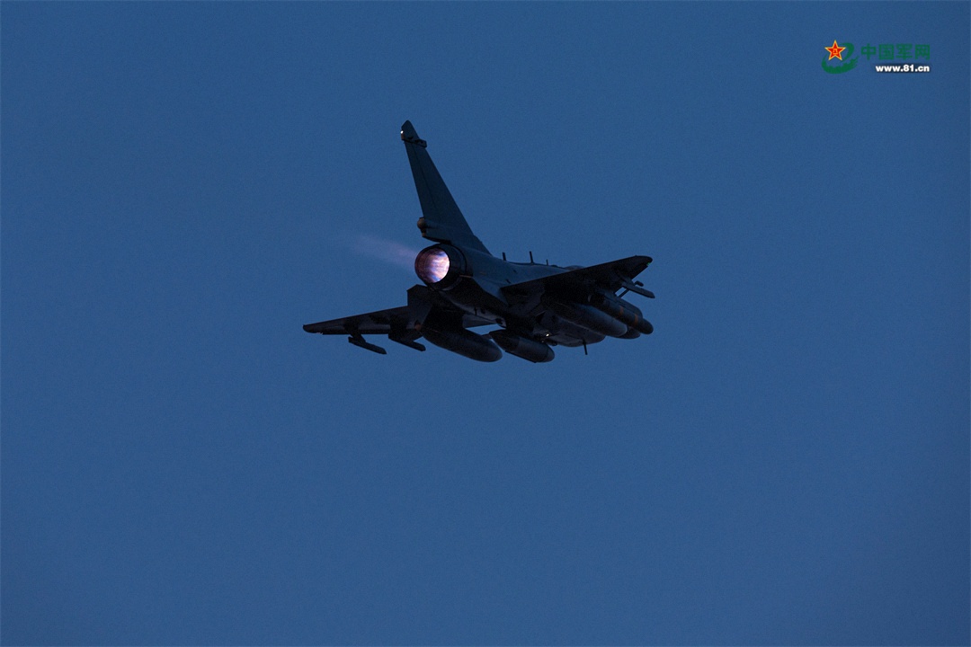 夜幕下,随着最后一架战鹰返场落地,当日飞行顺利结束,参训飞行员态势感知、协同作战、遂行任务能力得到有效锤炼。