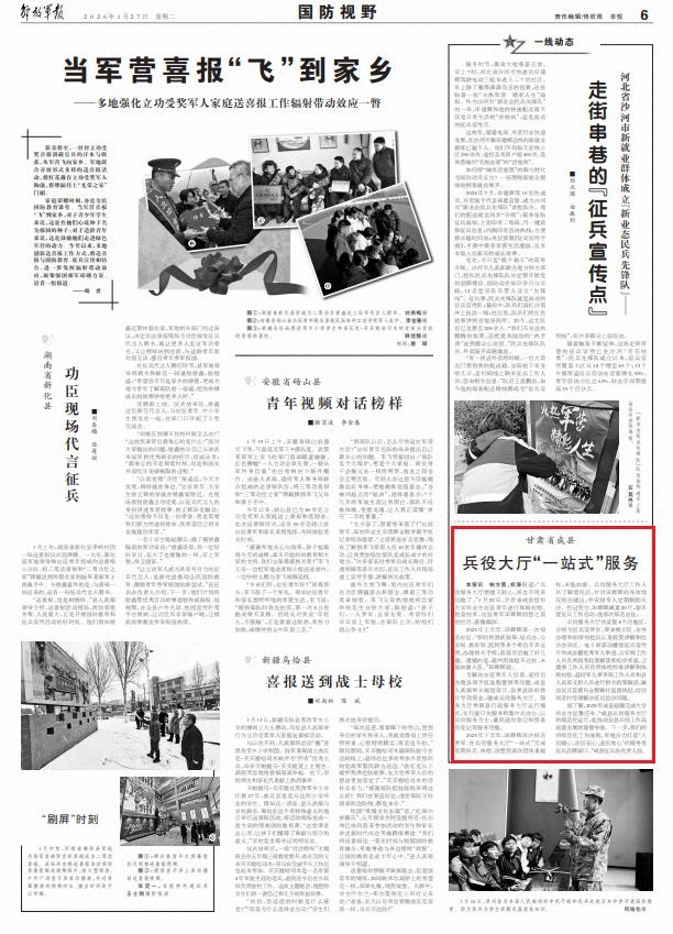 为解决应征青年入伍前、退役后办理各项手续流程繁琐等问题,成县人武部牵头规划设计,县委县政府拨付专项资金,建成兵役服务大厅。服务大厅参照县行政服务大厅运行模式,实行窗口化服务和集中式办公,以兵役服为主,兼具退役登记和预备役登记等服务功能。