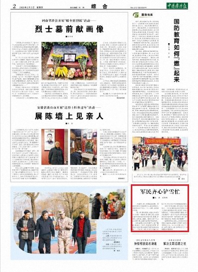 白雪皑皑的山路上,官兵和村民的身影忙碌穿梭,铁锹声、扫雪声、说笑声回荡在山谷。从山上村落,到山下大路,近两公里的山路,在军民合力下,渐渐露出平整路面。