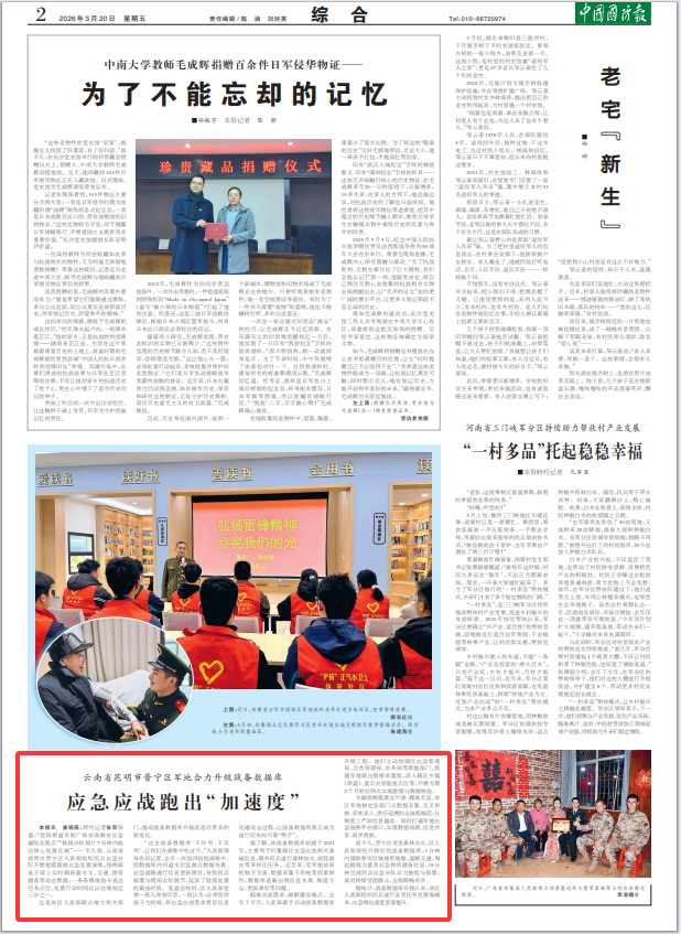 云南省昆明市晋宁区军地合力升级战备数据库