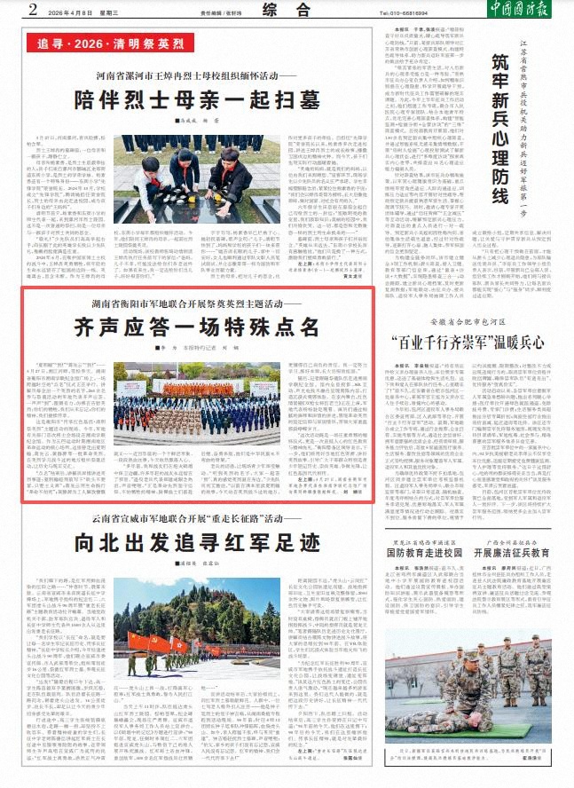 “这次活动既是一场庄重肃穆的缅怀仪式,更是一次直抵人心的红色教育与精神洗礼。”衡阳警备区领导表示,下一步,他们将用好当地红色资源、讲好英烈故事,引导广大干部群众特别是青少年铭记历史、崇尚英雄、争做先锋,让红色基因代代相传。
