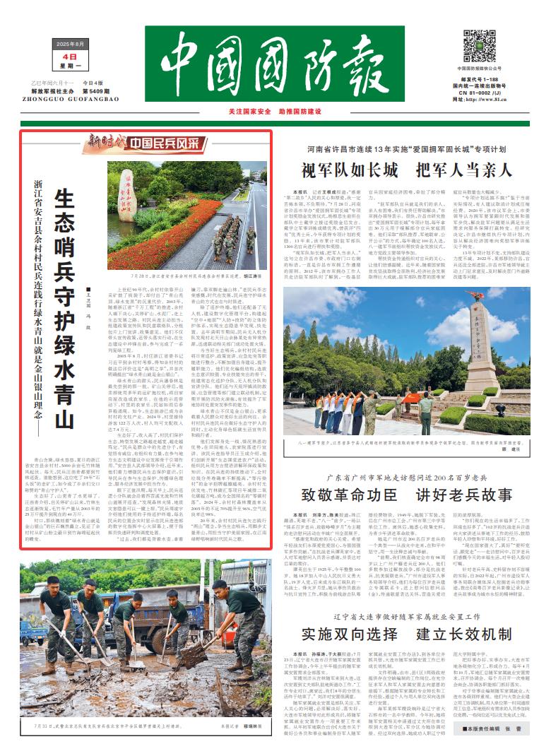 20年来,余村村民兵连矢志践行“两山”理念,争当生态哨兵,用脚步丈量青山,用担当守护美丽家园,在江南绿野唱响新时代民兵之歌。