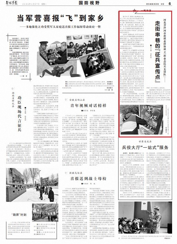 随着触角不断延伸,这场走街串巷的征兵宣传已在沙河“开花结果”:民兵先锋队成立以来,征兵宣传覆盖小区从18个增至69个;13个乡镇街道征兵咨询电话量增长58%,青年咨询占比达63%,较去年同期提高15个百分点。