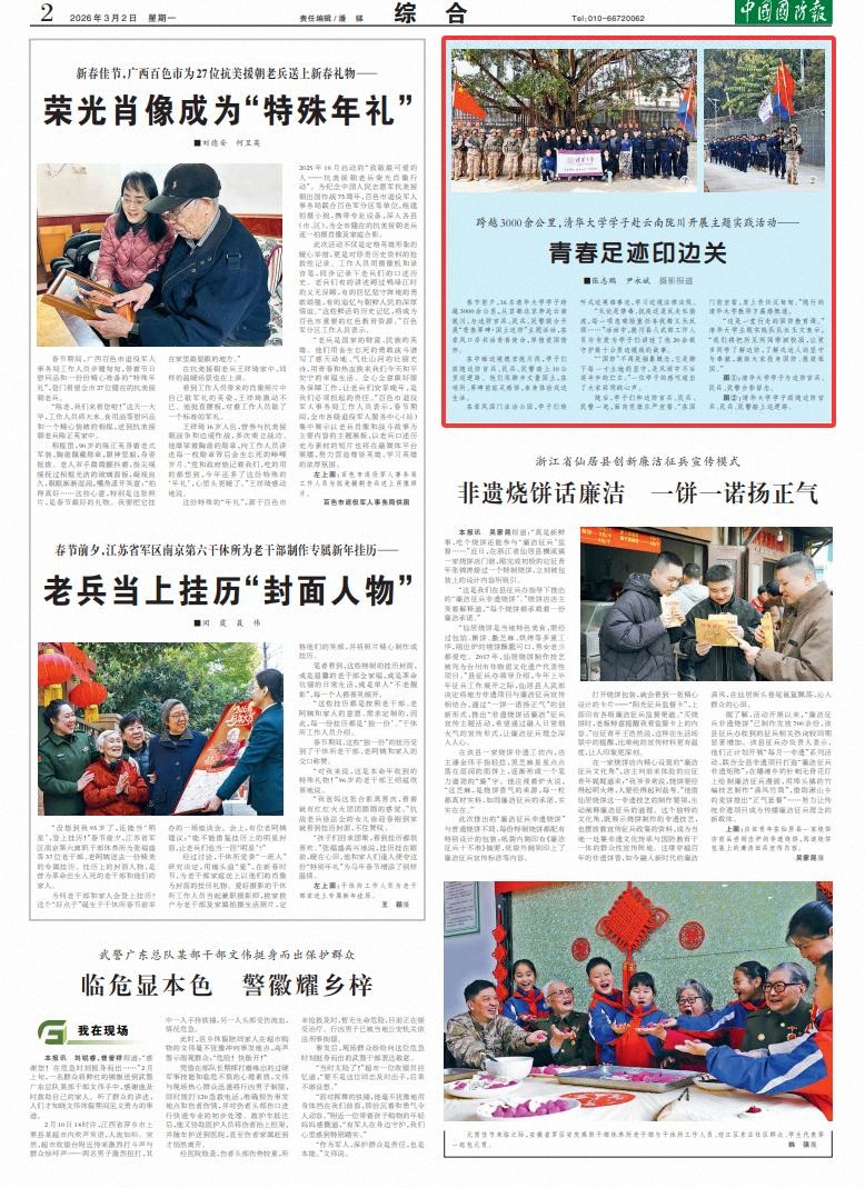 春节前夕,16名清华大学学子跨越3000余公里,从首都北京奔赴云南陇川,与边防官兵、民兵、民警联合开展“青春界碑·国土边防”主题活动,在章凤口岸共话青春使命,厚植爱国情怀。