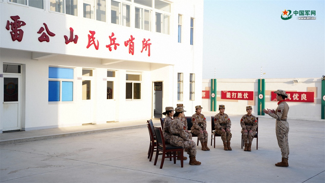 老哨长为哨员开展政治教育。中国军网记者盛宇 摄