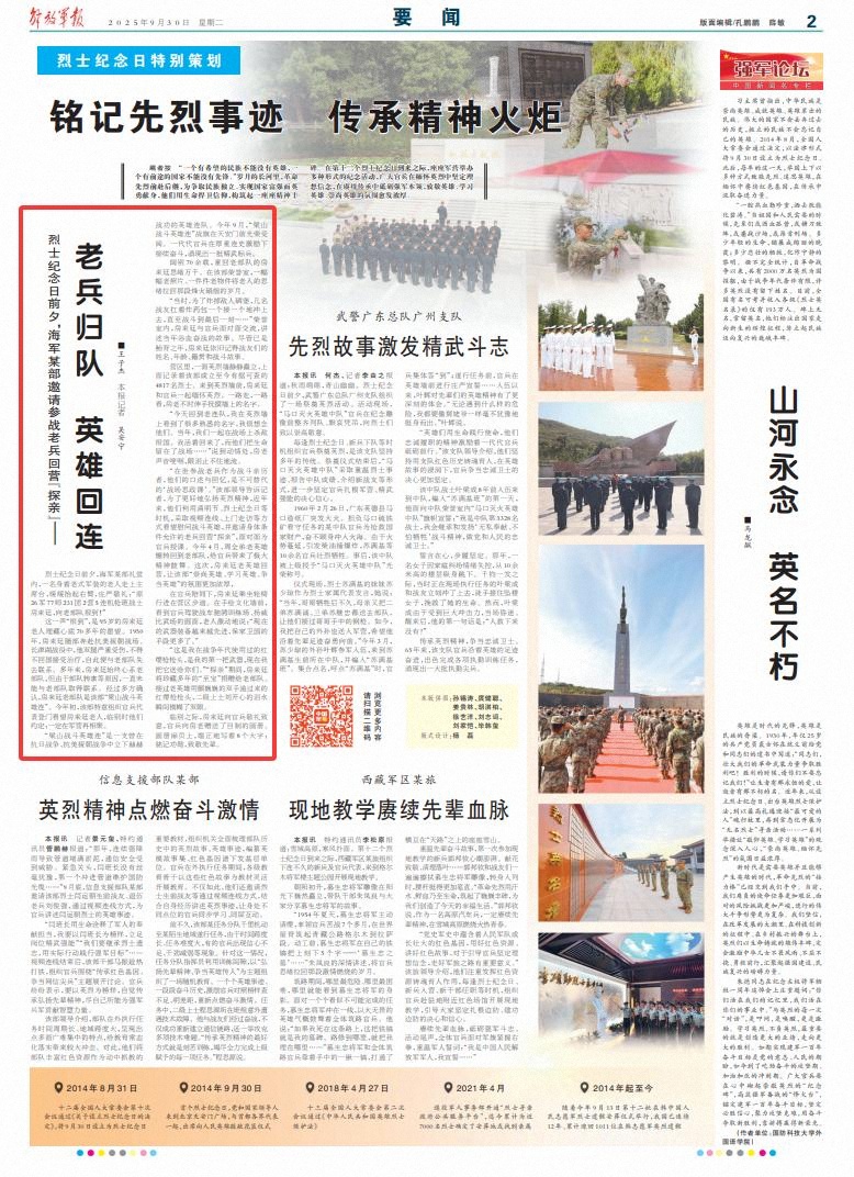 烈士纪念日前夕,海军某部邀请参战老兵回营“探亲”——