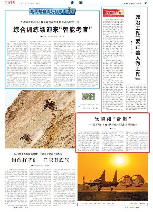 “前方发现‘雷区’!”初秋,海军某扫雷舰大队一场实战化扫雷训练在某海域展开。该大队张家港舰刚到达预定海域,便接到导调指令。该舰舰长迅速进行战斗部署并下达作战命令,官兵立即进入各自战位,全舰进入战斗状态。