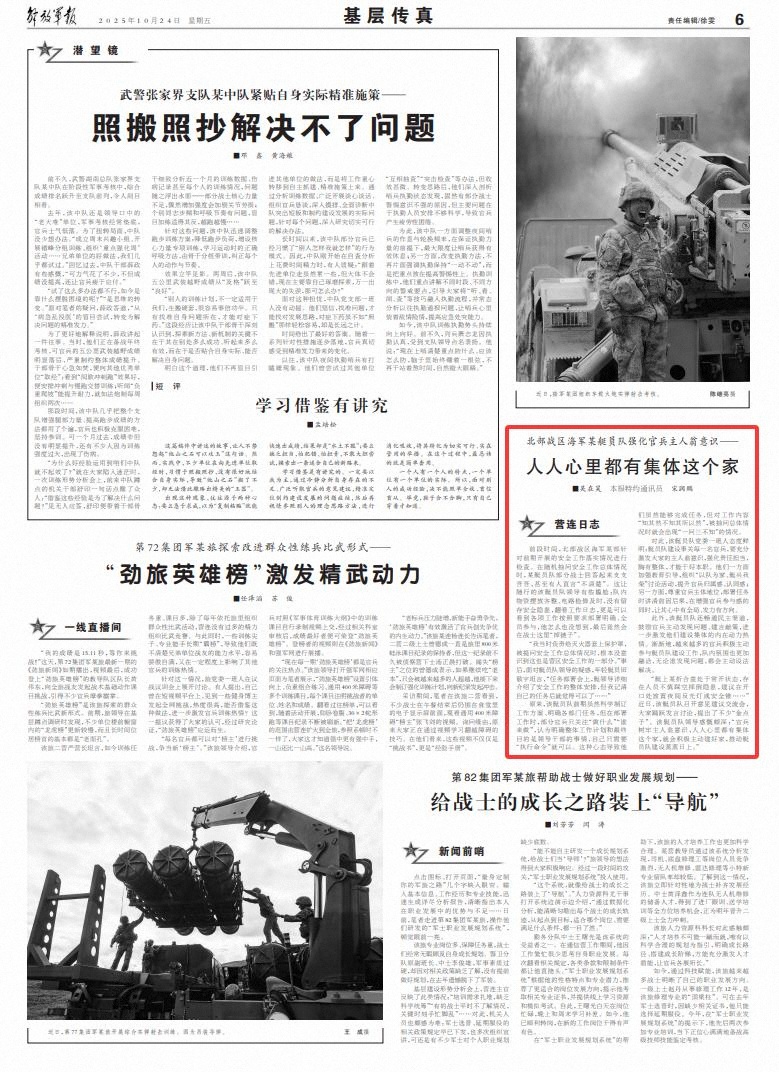 此外,该艇员队还畅通民主渠道,鼓励官兵主动发现问题、建言献策,进一步激发他们建设集体的内在动力热情。渐渐地,越来越多的官兵积极主动参与艇员队建设工作,队内氛围也更加融洽,无论谁发现问题,都会主动设法解决。