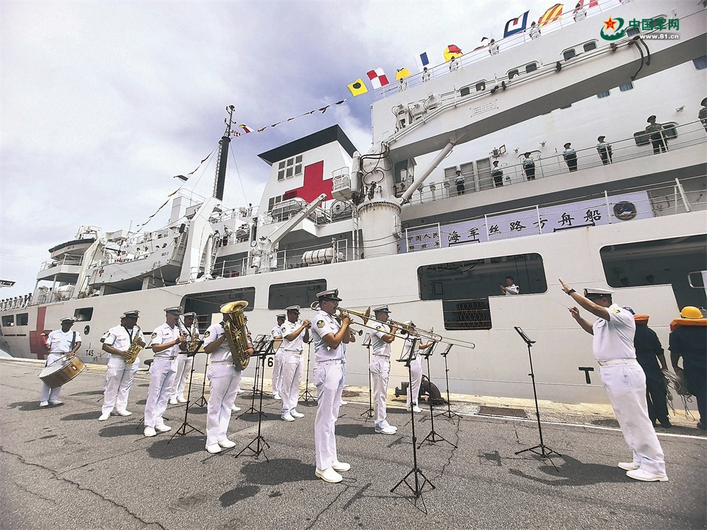 “丝路方舟”号医院船抵达巴西里约热内卢港。这是巴方军乐队演奏现场。崔晓洋摄