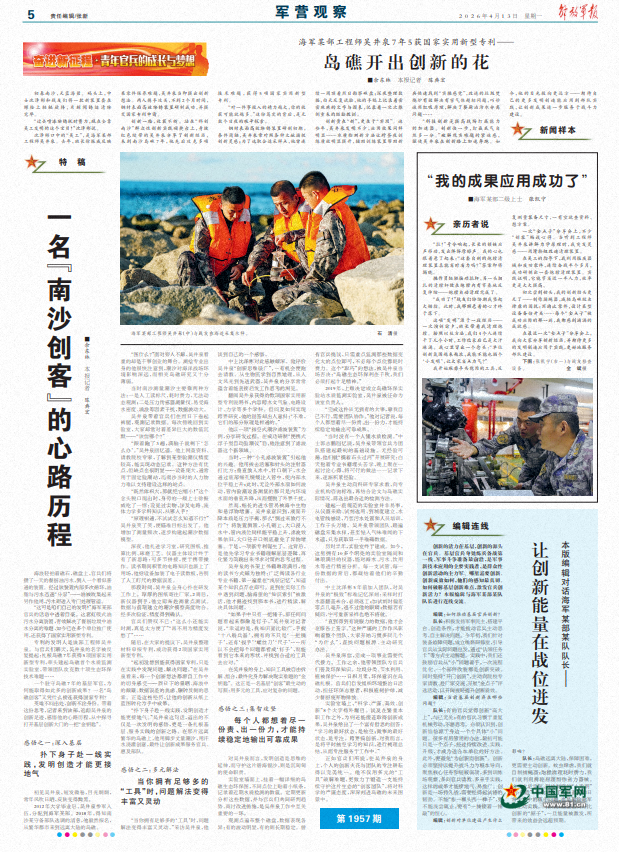 一个驻守岛礁7年的基层军官,为何能取得如此多的创新成果?一名“岛礁创客”又凭什么接连获得国家专利?