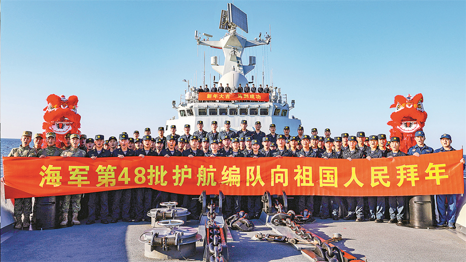海军第48批护航编队在亚丁湾向祖国人民拜年