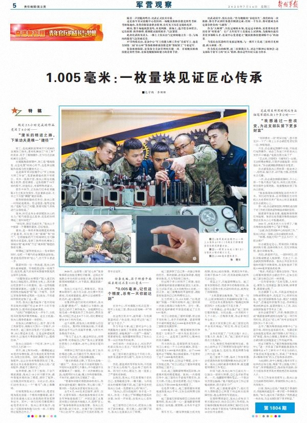 然而,欲速则不达。一段时间后,团队训练成绩进入瓶颈期。无奈之下,孙志斌找到师傅求助。张庆山并没有告诉他如何提升训练质效,而是给他讲了那枚1.005毫米量块的故事。