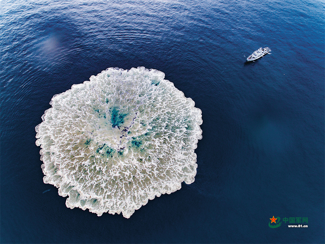 反水雷训练中战舰扫爆水雷。黄文洲 摄