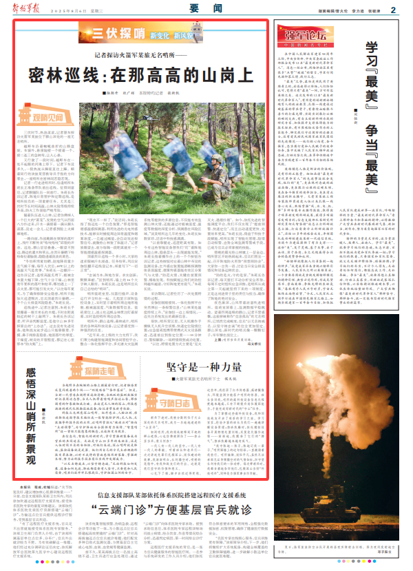 “以无名铸威名,以坚守铸忠诚。”无论科技如何发展、设备如何先进,阵地都需要有人坚守,只要党和人民需要,哨兵们就牢牢扎根战位,守护祖国山河的安宁。