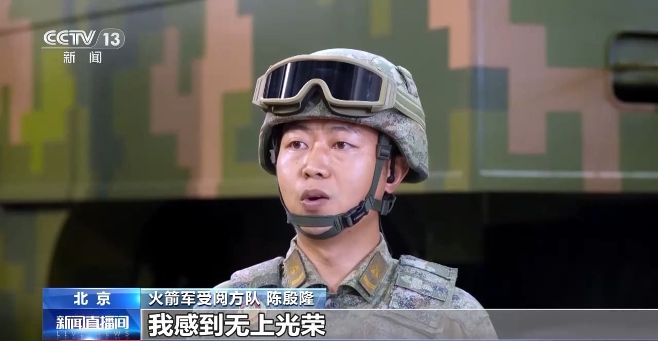 火箭军受阅方队 陈殷隆:这次能够圆满完成受阅任务,我感到无上光荣,我将接过班长手中的“接力棒”,展现出新时代火箭兵敢为人先、奋进一流的昂扬风貌。