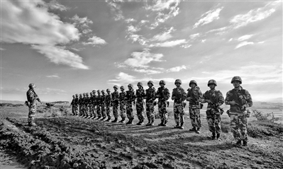 野外训练场,战士们列队完毕,整装待发。尽管这里荒无人烟,他们依旧站成一条线,军容严整、身姿挺拔。无论何时何地,他们总是闻令而动,用最好的状态迎接任务到来。
