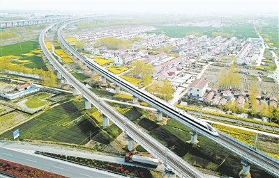 4月9日,一列动车组列车行驶在江苏连云港市海州区境内。4月10日零时起,全国铁路实行新的列车运行图。新图主动适应客货需求逐渐旺盛的实际,精准供给运输产品,大幅压缩部分城市间旅行时间,增开跨局大宗货物直达列车,扩充陆海新通道班列规模,提升客货运输服务品质。 新华社发