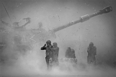 上图:5月12日,以色列炮兵向加沙地带目标射击。 新华社发
