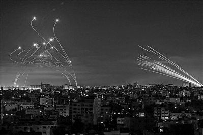 上图:以色列“铁穹”系统拦截哈马斯火箭弹。新华社发