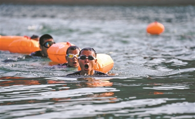 图①:近日,第74集团军某旅组织侦察分队在某水域开展水上训练。图为官兵正在进行蛙泳训练。本报记者 栾 铖摄