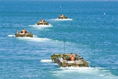图②:初夏时节,东部战区陆军某旅在某海域组织泛水编波训练,锤炼官兵海上作战能力。 林佳裕摄