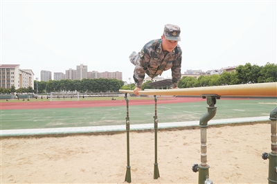 “庄教员,再来一个!”军体训练场上,庄志建一个完美的双杠5练习示范刚落地,学员中就爆发出一阵雷鸣般的掌声和喝彩声。单杠、双杠从1练习至8练习做下来,庄志建面不改色气不喘,靠的是什么?