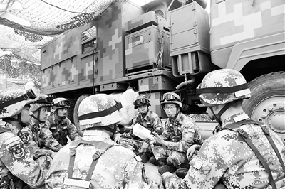 野外驻训开展以来,第80集团军某旅勤务保障营结合实际开展“论述+解析+故事+讨论”互动式微党课,既较好解决了工学矛盾,还使党课更接地气。图为士官党员赵洪江(右二)带领党员开展学习。