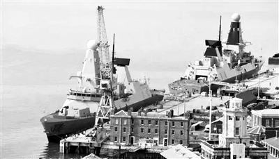 上图:被自捧为“欧洲第一舰”的英国海军45型驱逐舰自入役以来故障频频,让人大跌眼镜。英国国防采购部长日前承认,6艘45型驱逐舰有5艘处于“趴窝”状态。图为该型舰艇停靠在码头。