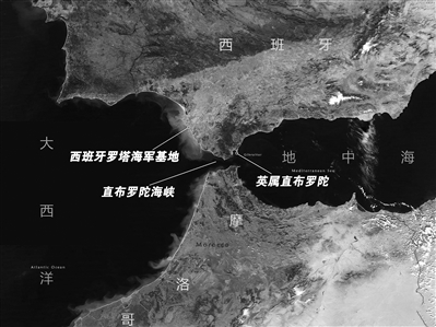 直布罗陀海峡位于西班牙和摩洛哥中间,是连接地中海和大西洋的咽喉要道,全长约90公里,最窄处仅13公里。苏伊士运河通航后,从波斯湾运载的石油必须经过这里才能到达西欧和北美,因此直布罗陀海峡被誉为西方的能源“生命线”。这里也是北约海军出入地中海、俄罗斯黑海舰队进入大西洋的必经之路,战略地位不言而喻。