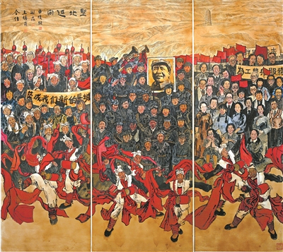 从此,红色成了延安的主色调。这里随处都是“中国共产党万岁”的标语,遍地可见“工农民主政府”的牌子,欢天喜地的群众送粮送衣,崎岖不平的山路上形成了川流不息的支前大军。一曲信天游唱得红军战士心头暖:“一道道山来一道道水,咱们中央红军到陕北。千家万户把门开,快把咱亲人迎进来……”